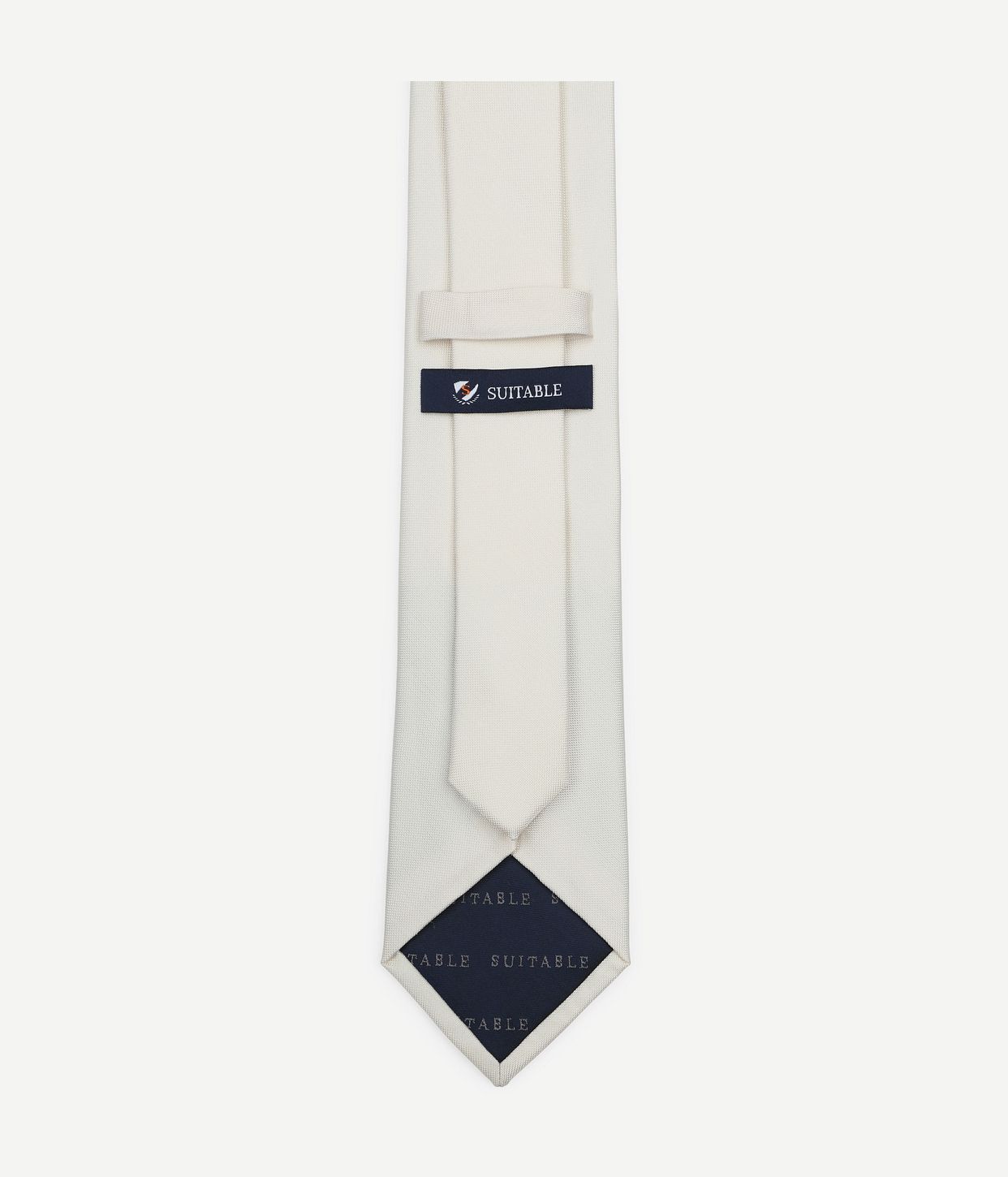 Met de Suitable Zijde Stropdas Off White straalt u tijdens elke gelegenheid elegantie uit. Deze subtiel charmante stropdas, vervaardigd van 100% zijde met een breedte van 7,5 cm, biedt u niet alleen een zijdezachte touch, maar ook een hoogwaardige kwaliteit die lang meegaat. Combineer deze stropdas met een Suitable overhemd en pak voor een geraffineerde look. De effen witte kleur geeft een tijdloze uitstraling die perfect past bij diverse outfits. - Dessin: Effen - Samenstelling: 100% zijde - Afmetingen: 7,5 cm breed