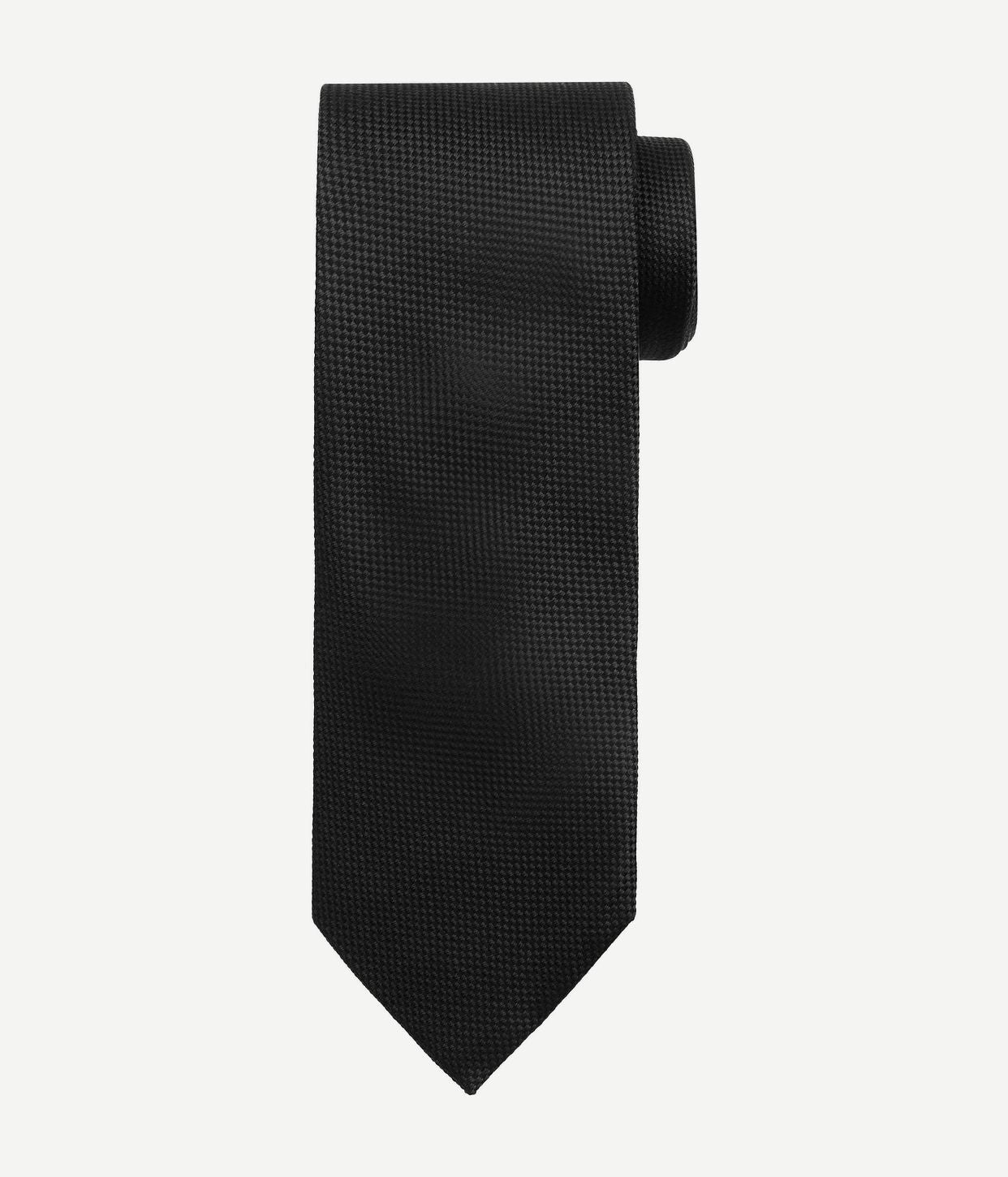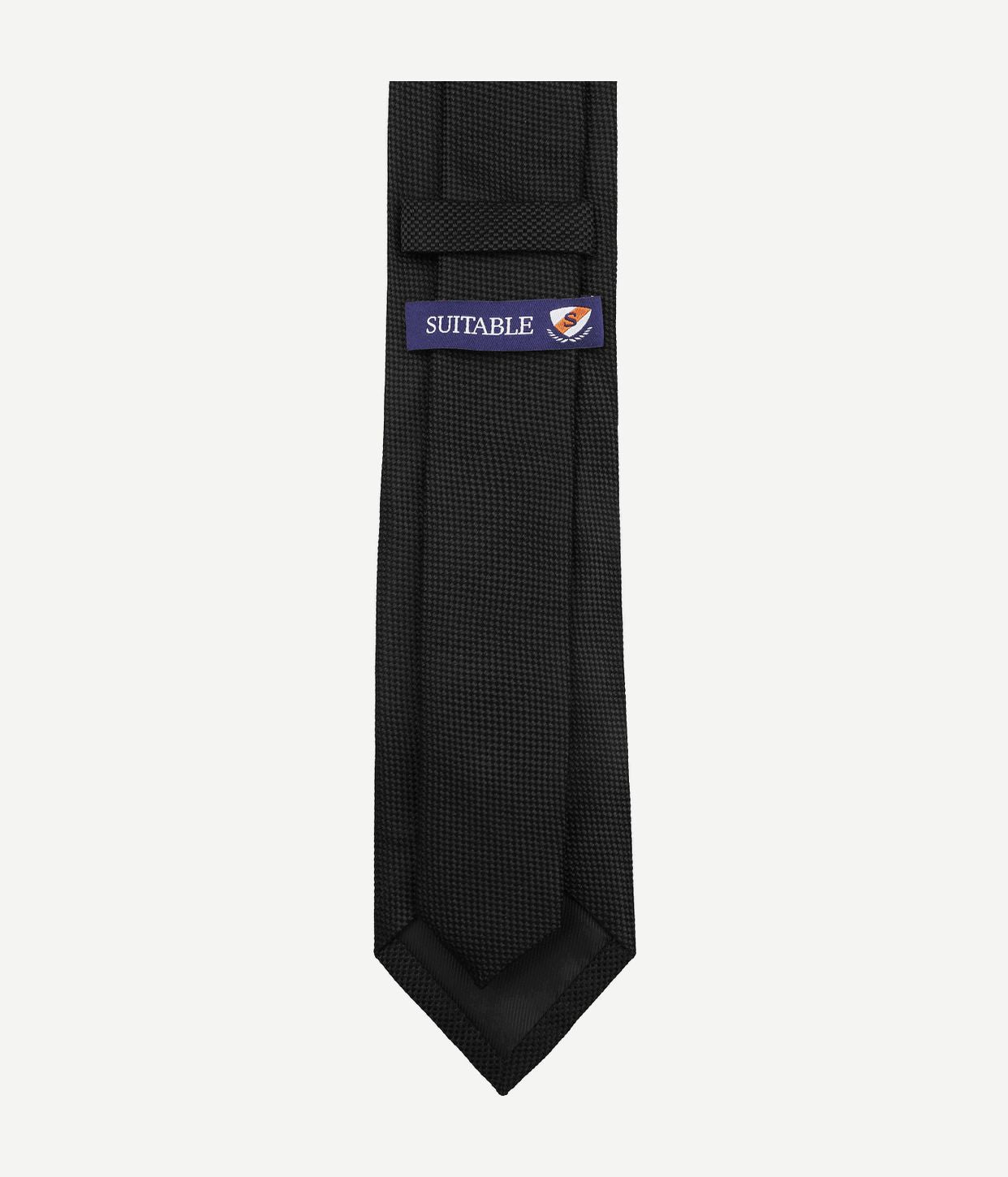 De Suitable Zijde Stropdas Zwart is een verfijnd accessoire voor de klassieke heer. Deze stropdas, met een breedte van 7cm, geeft u een verzorgde uitstraling. Het is vervaardigd uit zuivere zijde, wat een luxe uitstraling garandeert en ongeëvenaard comfort biedt. Gecombineerd met een Smoking of blazer van Suitable, onderstreept dit accessoire uw elegante voorkomen. De effen weefstructuur en de zwarte kleur maken deze stropdas tot een tijdloze en veelzijdige keuze.