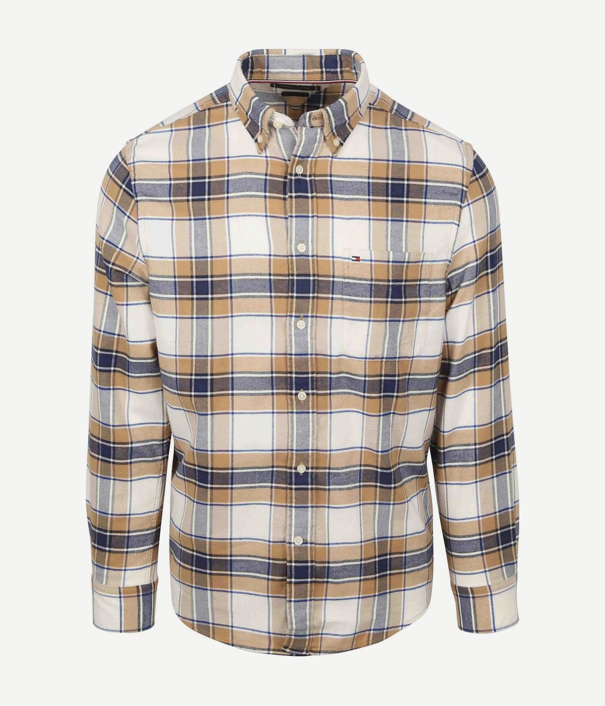 Maak een statement met dit beige geruite flanellen overhemd van Tommy Hilfiger.