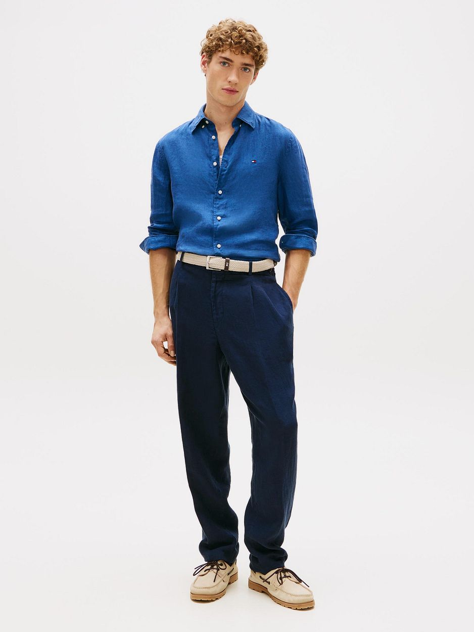 Tommy Hilfiger overhemden geven u een verzorgde, ontspannen uitstraling in linnen met een effen afwerking. Linnen draagt licht en voelt aangenaam koel op warme dagen. Linnen is ademend en helpt vocht snel af te voeren, zodat u fris blijft. De button-down boord en lange mouwen met manchetten zorgen voor een nette lijn. De regular-fit biedt comfortabele bewegingsruimte en zit de hele dag prettig. Combineer met een Tommy Hilfiger chino en een bijpassende riem.