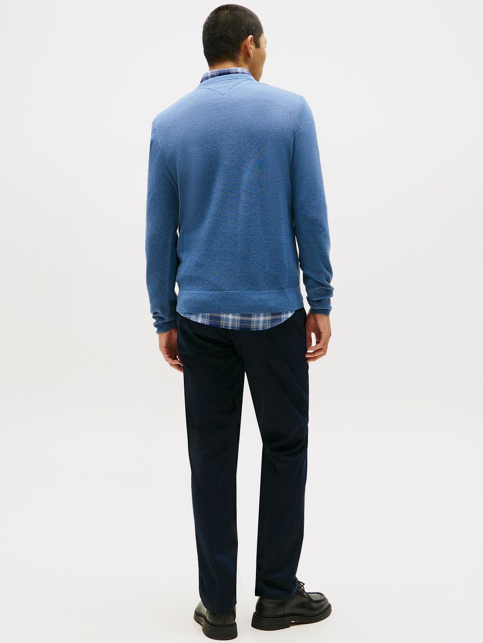 Upgrade uw garderobe met deze tijdloze blauwe trui van Tommy Hilfiger. Gemaakt van hoogwaardig katoen, zorgt deze pullover voor comfortabele warmte en een stijlvolle uitstraling. De regular-fit pasvorm en het klassieke design maken deze trui een must-have voor uw kledingcollectie.