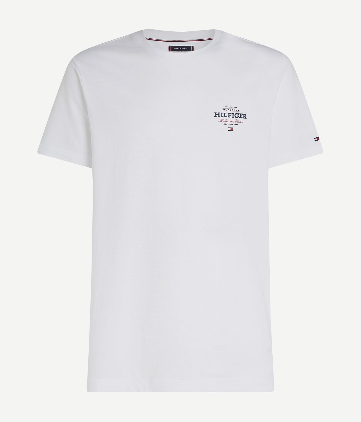 Voeg een vleugje verfijning toe aan uw garderobe met dit trots gepresenteerde Tommy Hilfiger T-shirt. Het casual shirt is uitgevoerd in een klassieke witte tint, versterkt door een scherp merklogo. Voorzien van een geruststellend reguliere pasvorm, biedt het T-shirt u de vrijheid om met gemak te bewegen.